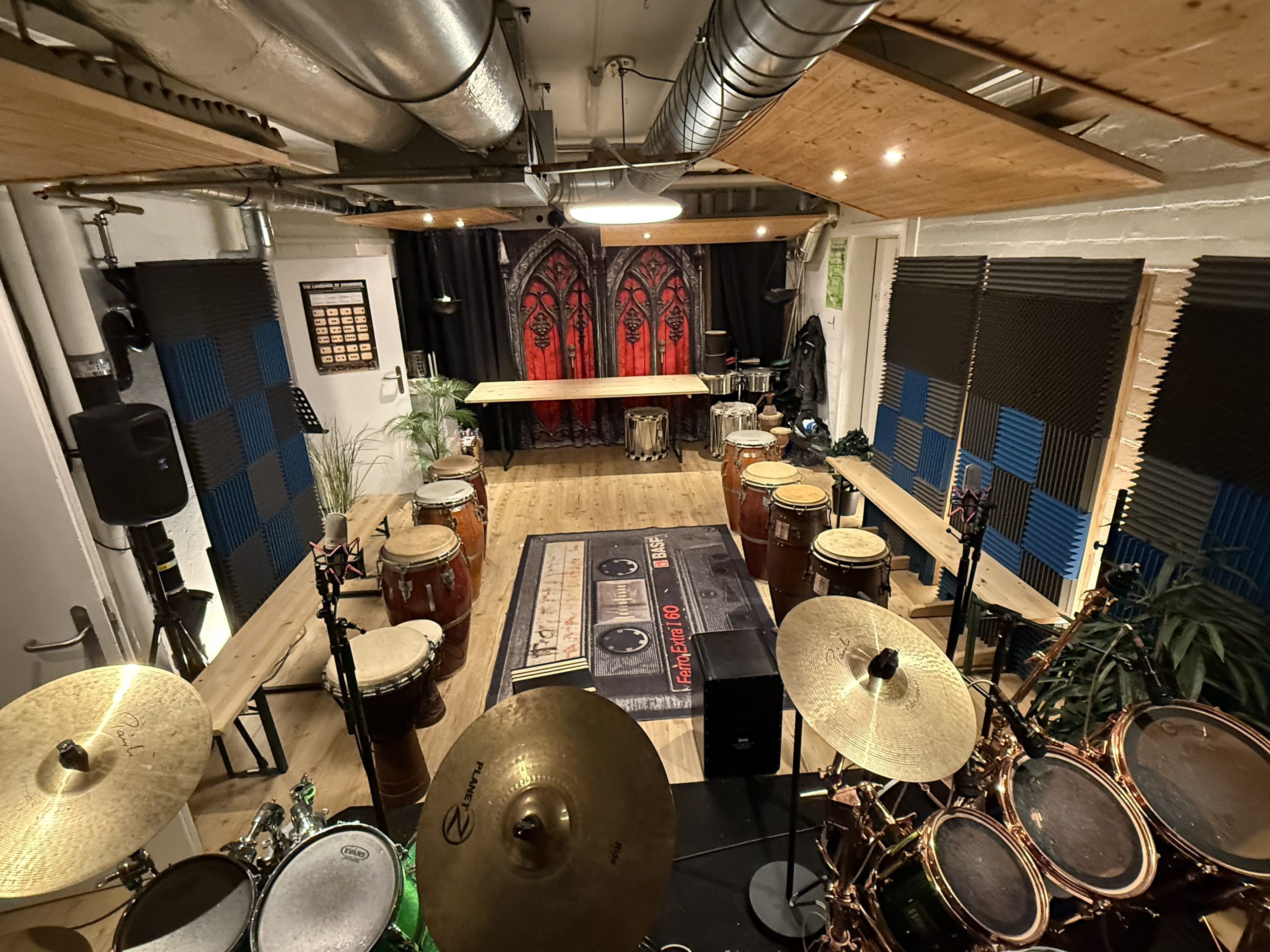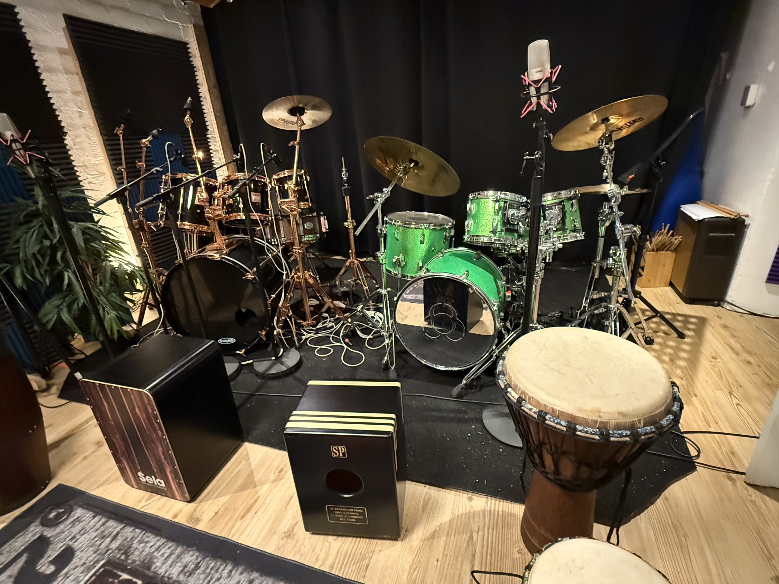 Bei einer Kindergeburtstagsparty im Percussion Art Center werden wir zuerst mit Percussionsinstrumenten etwas einüben und am Schlagzeug auf der Bühne zu einem Song spielen.